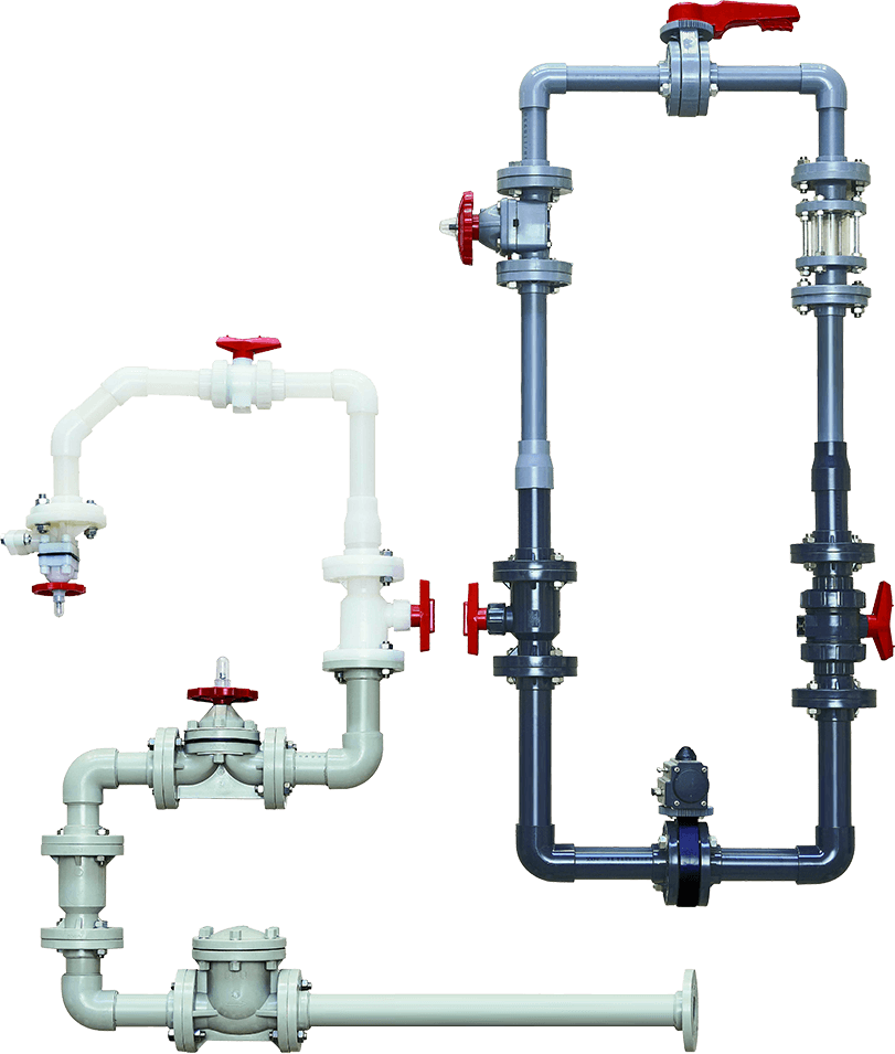 閥門(mén)系列產(chǎn)品如:隔膜閥、蝶閥、球閥、截止閥、止回閥、耐腐蝕泵等。主要材質(zhì)有CPVC、UPVC、PVDF、PPH、FRPP等。